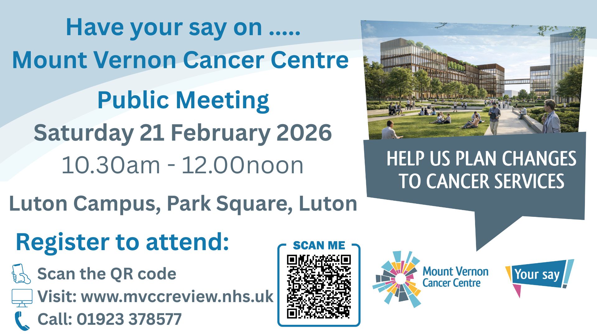 • Mount Vernon Cancer Consultation – public meeting in Luton
